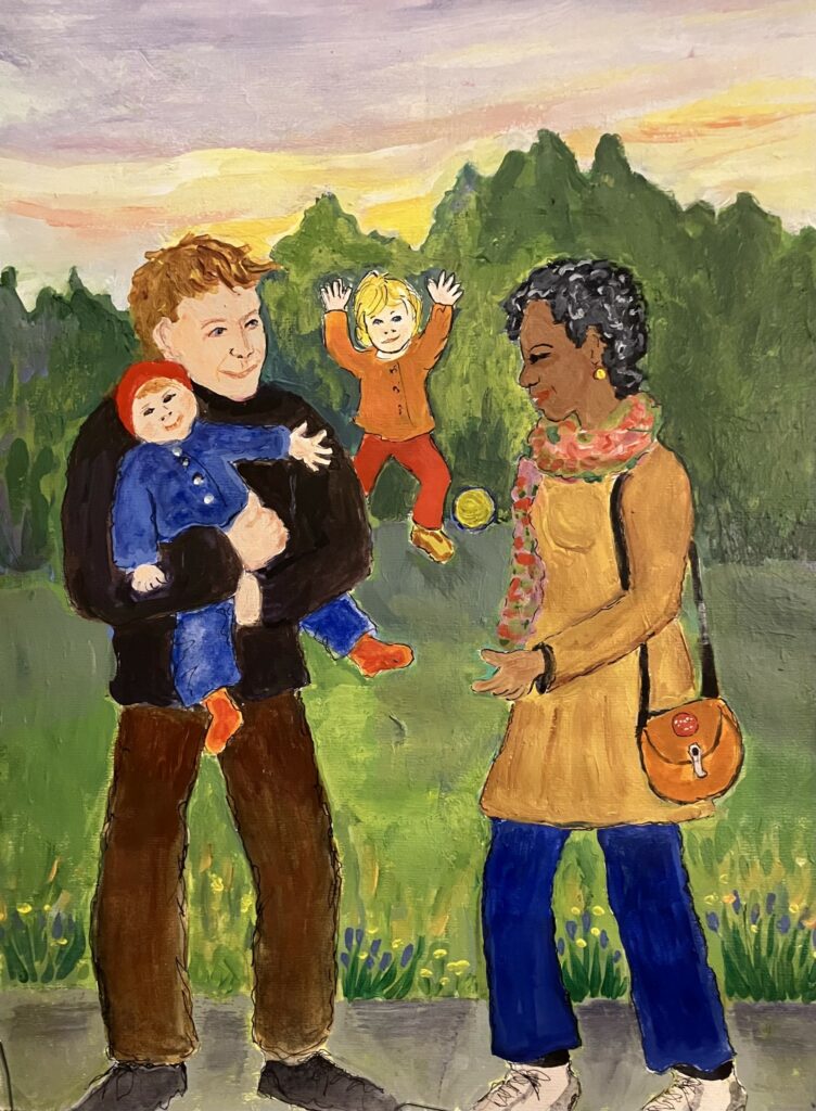 “Min datter Michala Bruun-Givskud, der er koordinator i Odense, bad mig om at tegne en plakat. Siden hun startede i Home-Start har jeg været helt vild med konceptet, og ofte fortalt om det til venner, bekendte og tilfældige, som jeg har mødt. Jeg har selv været pædagog i over 30 år og har selvfølgelig stødt på mange familier, der var pressede på den ene eller anden måde. Vi har tre børn og otte børnebørn – så selv at være familieven er ikke lige det, jeg kunne klare.” –