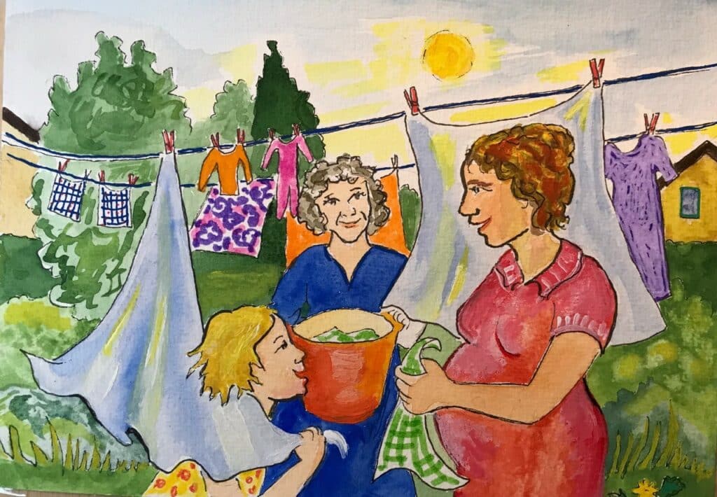 “Min datter Michala Bruun-Givskud, der er koordinator i Odense, bad mig om at tegne en plakat. Siden hun startede i Home-Start har jeg været helt vild med konceptet, og ofte fortalt om det til venner, bekendte og tilfældige, som jeg har mødt. Jeg har selv været pædagog i over 30 år og har selvfølgelig stødt på mange familier, der var pressede på den ene eller anden måde. Vi har tre børn og otte børnebørn – så selv at være familieven er ikke lige det, jeg kunne klare.” –
